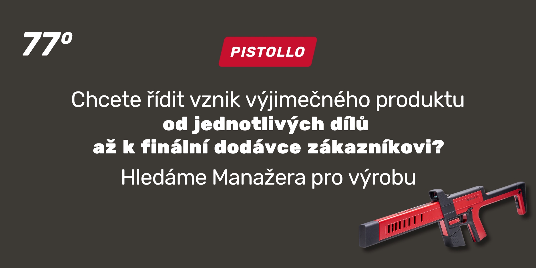 Hledáme manažera výroby, který zajistí životní cestu našeho unikátního produktu Pistollo 77 od jednotlivých kusů oceli, duralu a plastu, přes kompletaci, testování (tormentaci), až po předání zbraně zákazníkům.